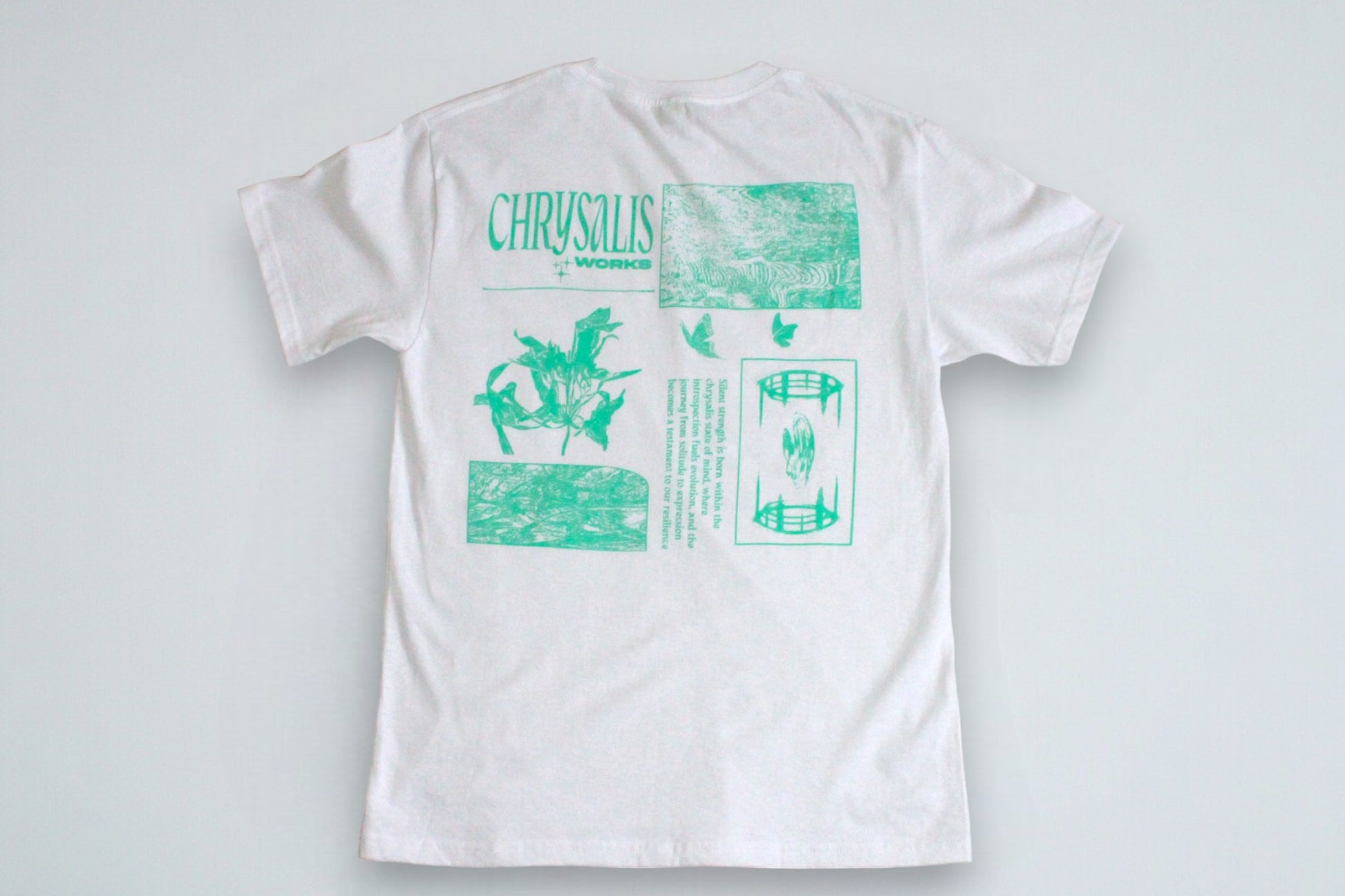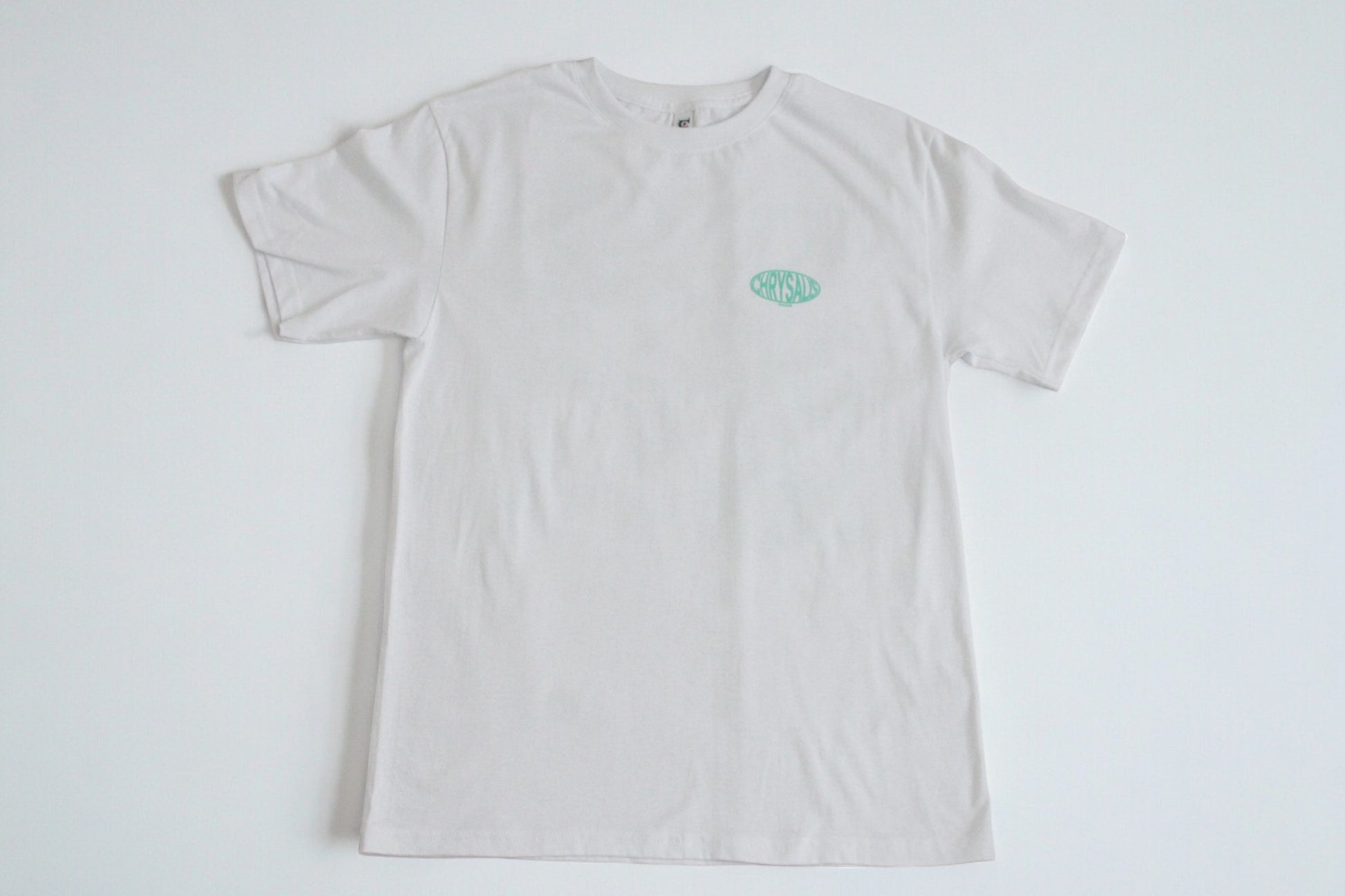 Nuestra primera White Tee 100% algodón representa la esencia de Chrysalis, haciendo referencia a nuestra visión y marcando nuestro estilo.